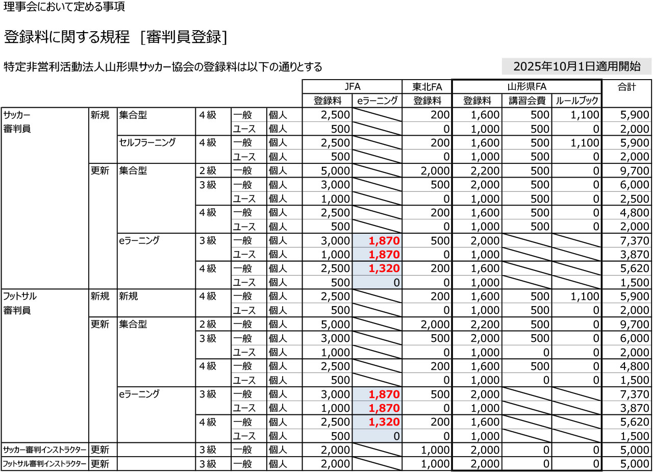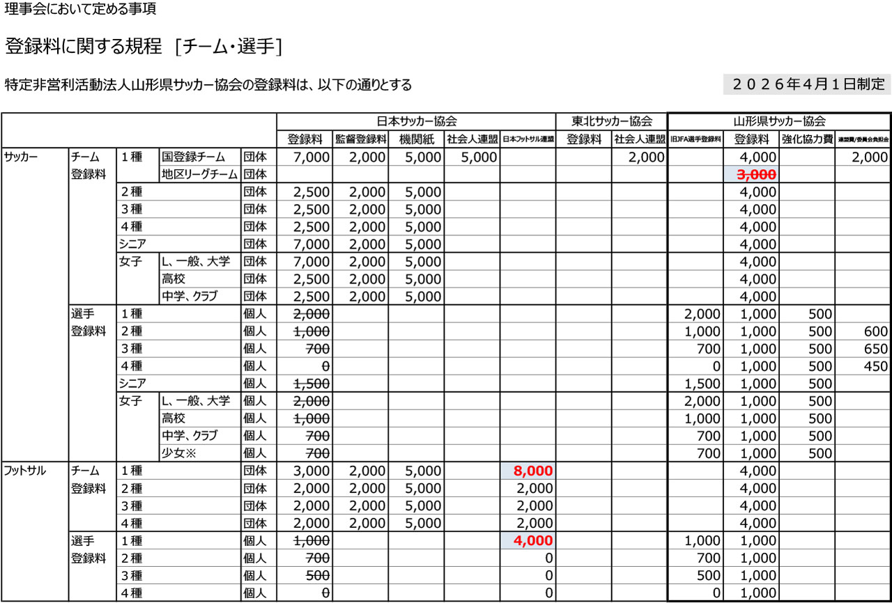 山形県サッカー協会【登録料・負担金】